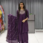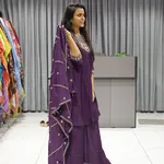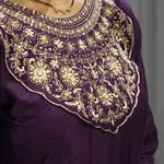 Kali Neck Work Short Kurti Plazzo Pair (Purple Dark)