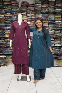 V Neck Mirror Work Plaza Pair