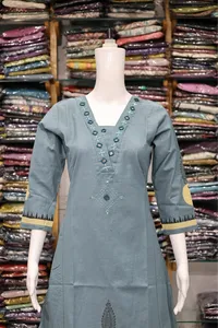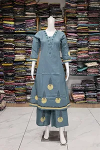 Neck Mirror Work With Daman Block Print Plaza Pair
